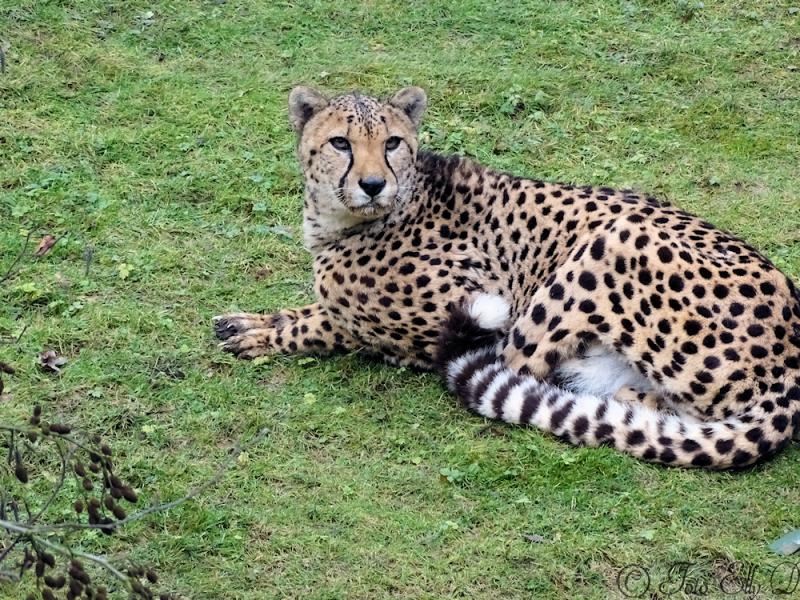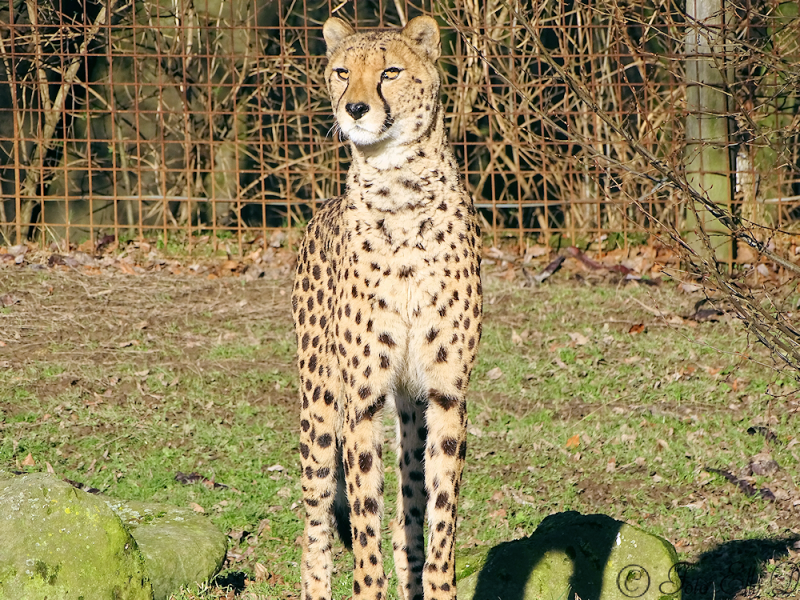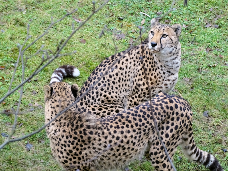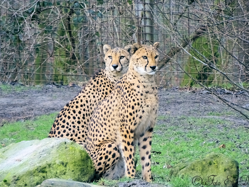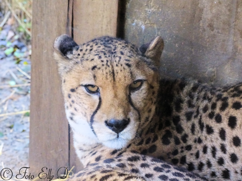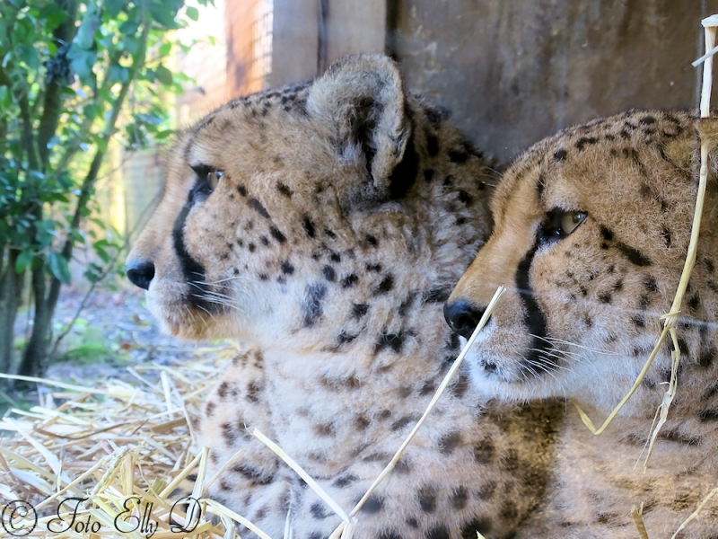 Het is koud en de cheetah`s liggen op stro in een hoekje tegen het glas aan