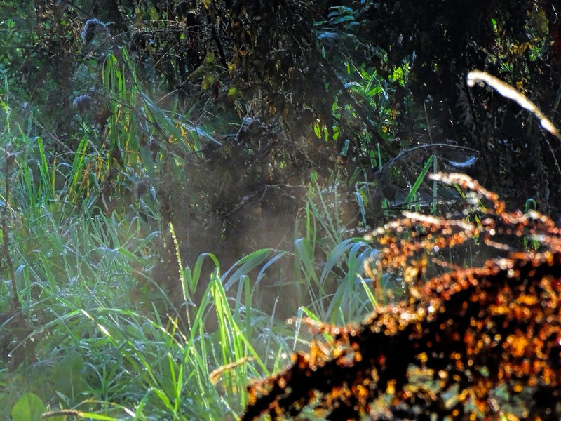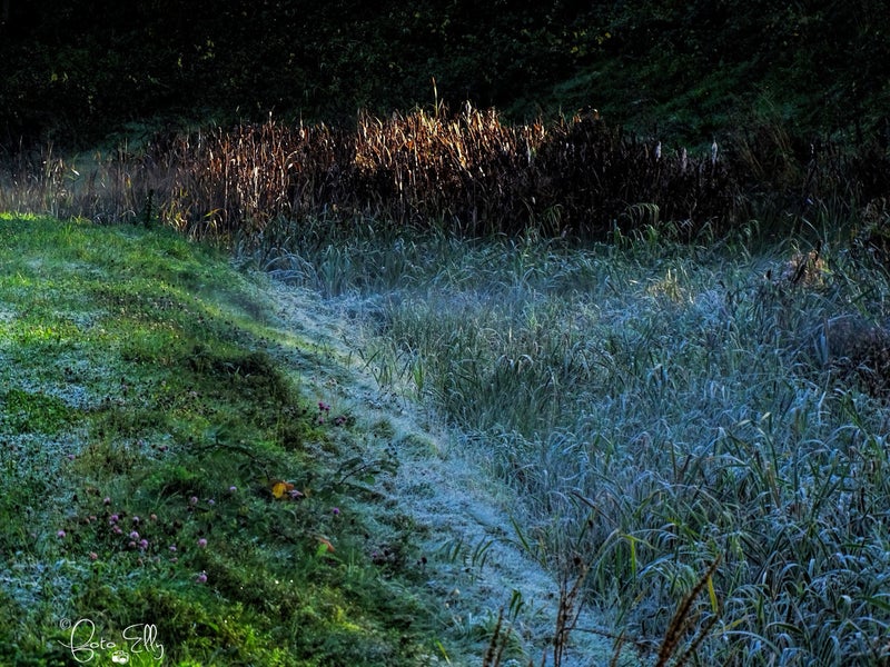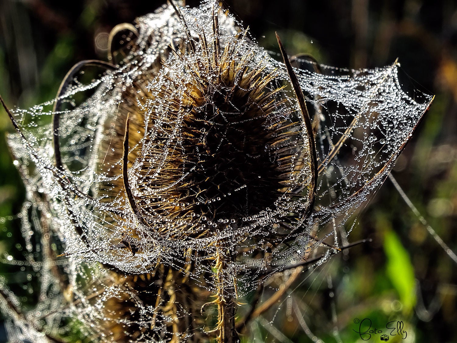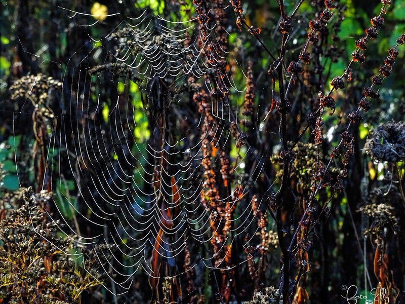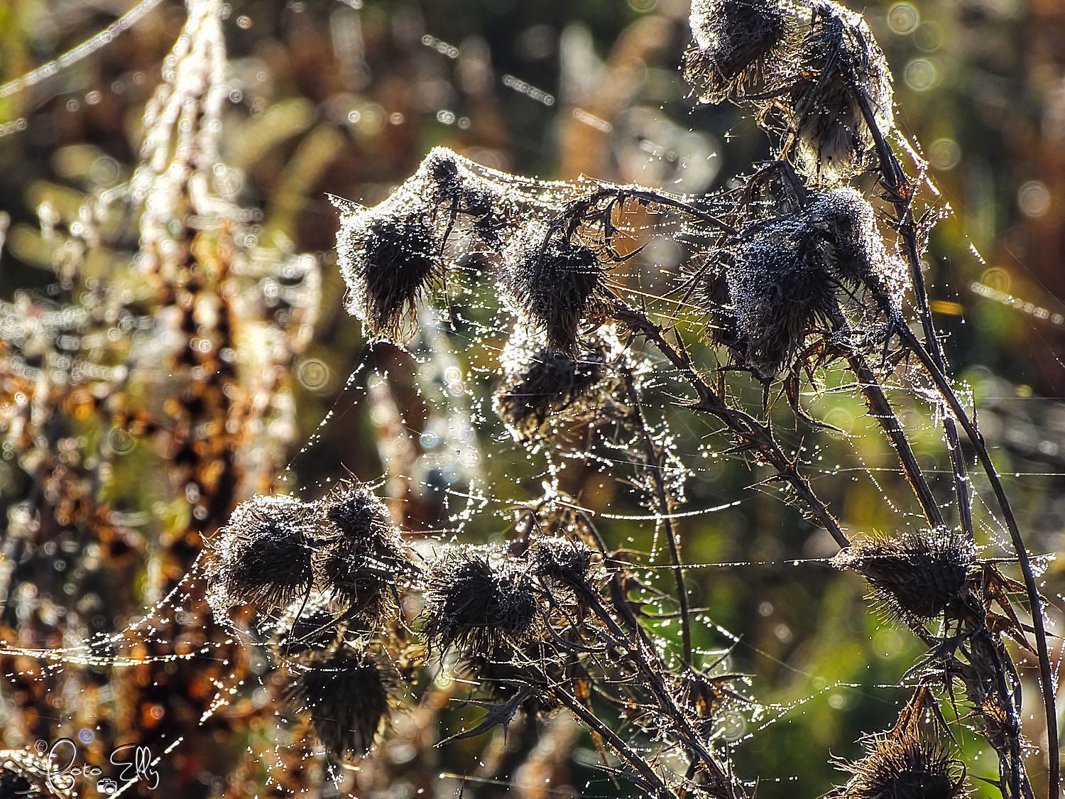De spinrag is dan mooi te zien,zelfs wat bevroren op schoenhoogte