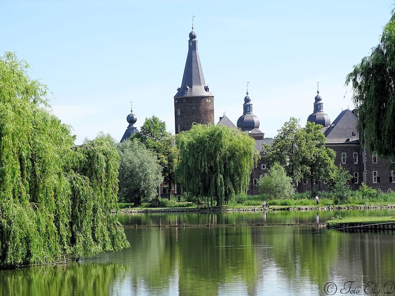 Kasteel Hoensbroek vanaf de Droomvijver gezien