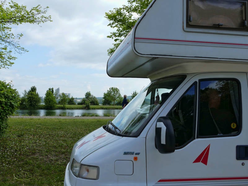We vertrekken zondag 8 mei ,het is grijs en soms een spetter ,tanken doe we in Luxemburg ,lekker goedkoop en rijden door naar Lac Madine ; Camperplaats zonder stroom betaal je 5€.