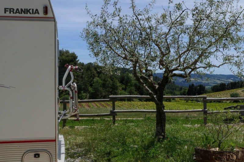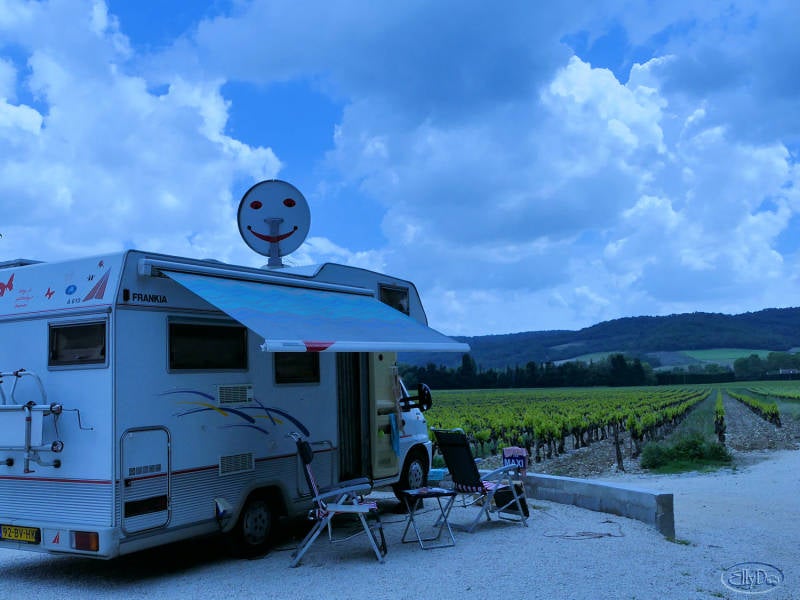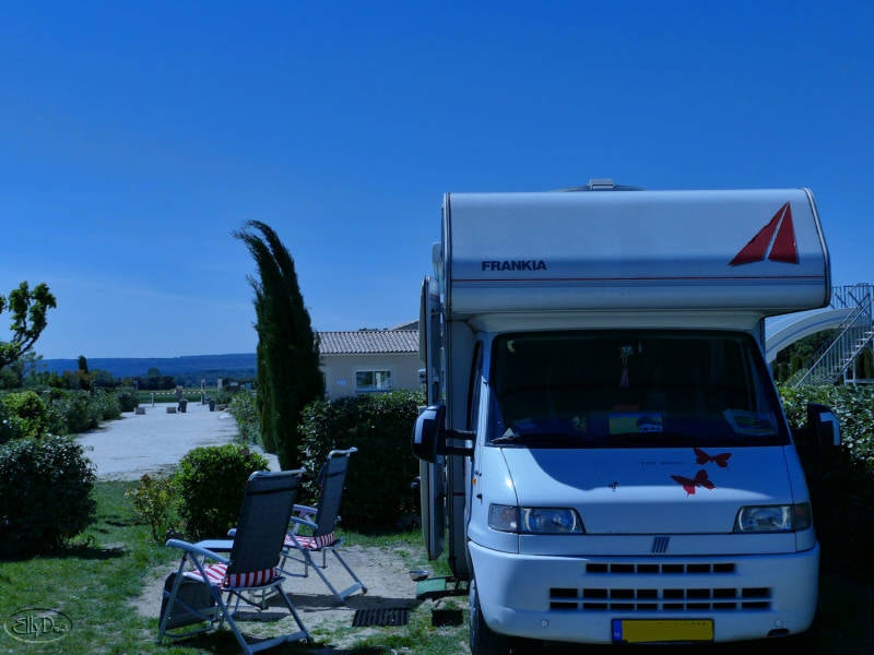 Weer lekker gelopen ,veel gezien ,het word erg warm we gaan een euk plekje opzoeken we gaan staan bij een andere wijnboer in Visan bij