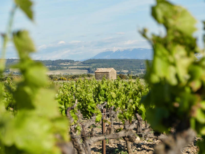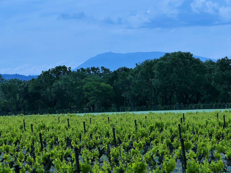 de omgeving is mooi in de verte de Mont Ventoux ,druiven moeten nog even doorgroeien