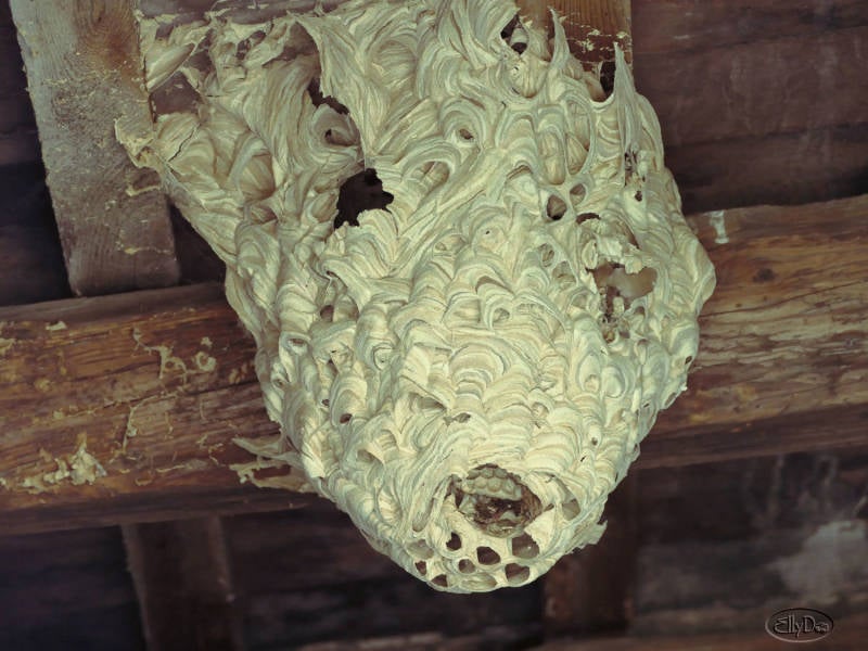 in dit lege schuurtje een enorm wespennest ...gelukkig leeg