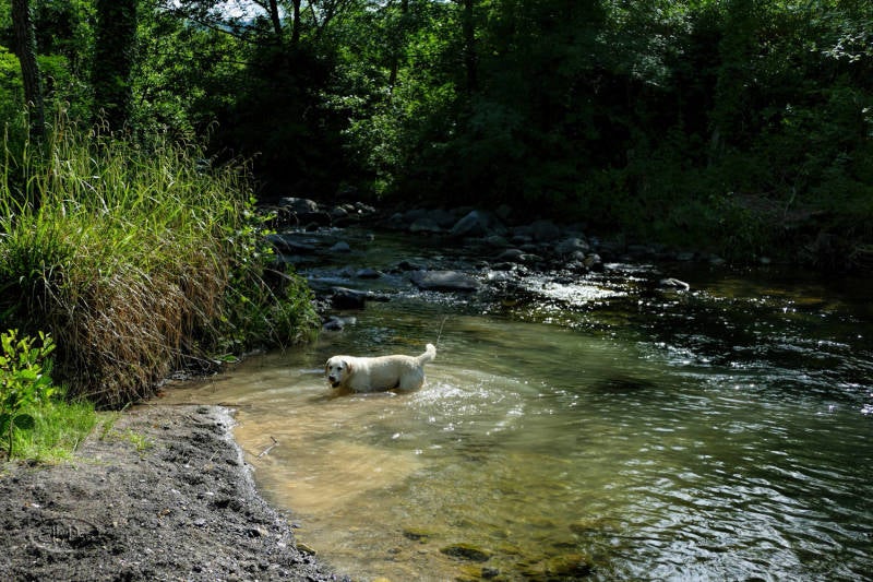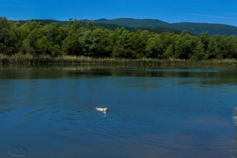 Schrikken ...nog meer plaatsen zijn ingenomen door verhuurhuisjes,we hebben toch nog een leuke plek kunnen vinden .En met deze warmte zwembad voor ons en een riviertje waar Floor lekker kan afkoelen en zwemmen