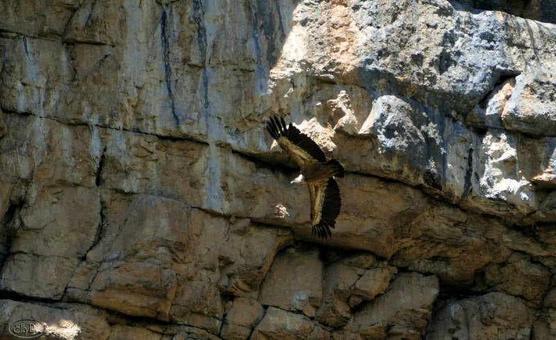 We vervolgen de weg D94 ,je komt uiteindelijk bij een tunnel in de buurt van Remuzat en als je de tunnel uitkomt kijk dan goed om je heen of je de gieren ziet er is een parkeerplaats ,en met veel geluk zie je ze vliegen ze zitten in de rotsen