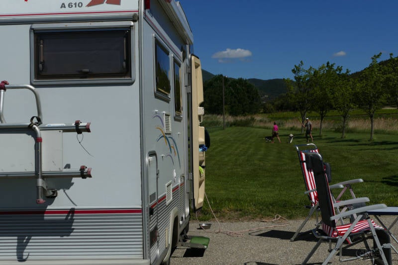We doen de boodschappen in Valreas en gaan naar de camperplaats bij het voetbalveldje