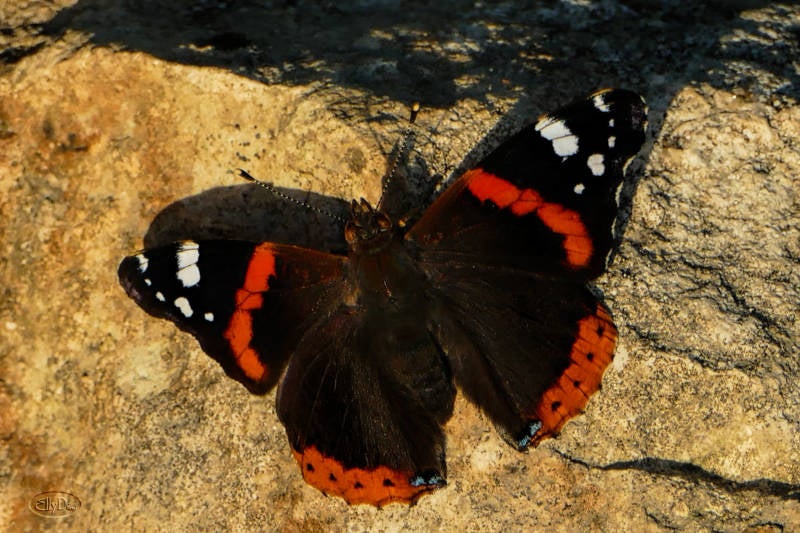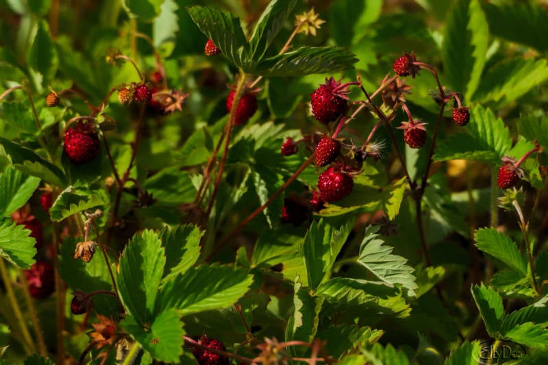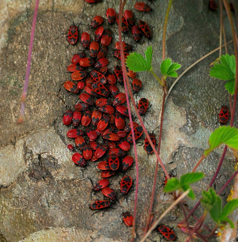 Achter de camper vonden we een grote rij met wilde aardbeitjes ,ze waren rijp ,lekker geplukt een stukje verder een kluwen van deze insecten