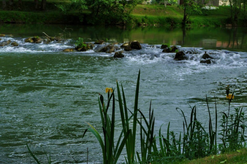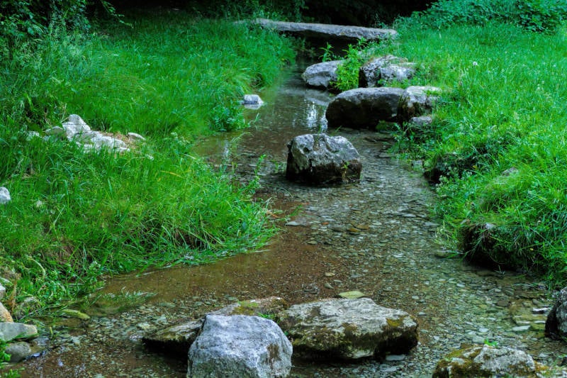 de bron je kunt er zo naar toe lopen en als beek vult het de vijvers waar Floor kan zwemmen en wij ook