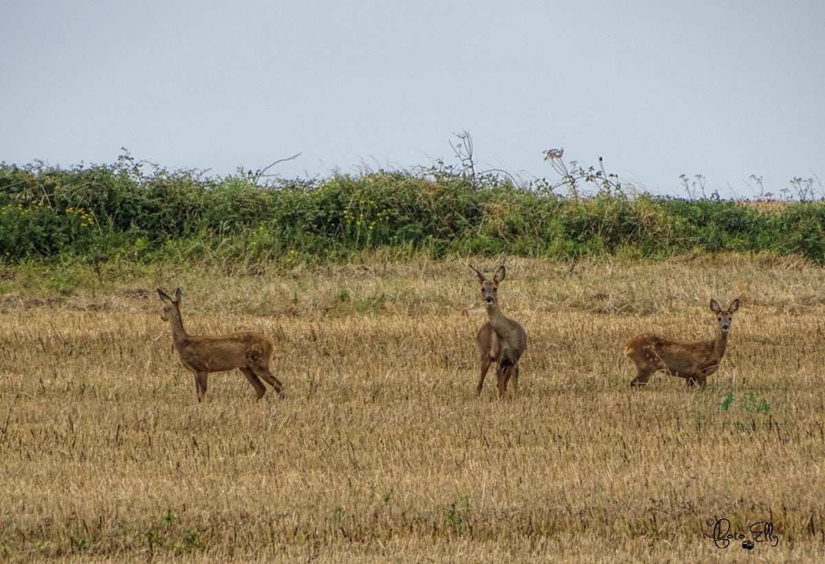 Schitterende vergezichten over zee...en in ene op het land moeder hert met haar twee bijna volwassen jongen.Je ziet ze wel eens vaker ,maar vlug een foto ervan maken is een andere zaak