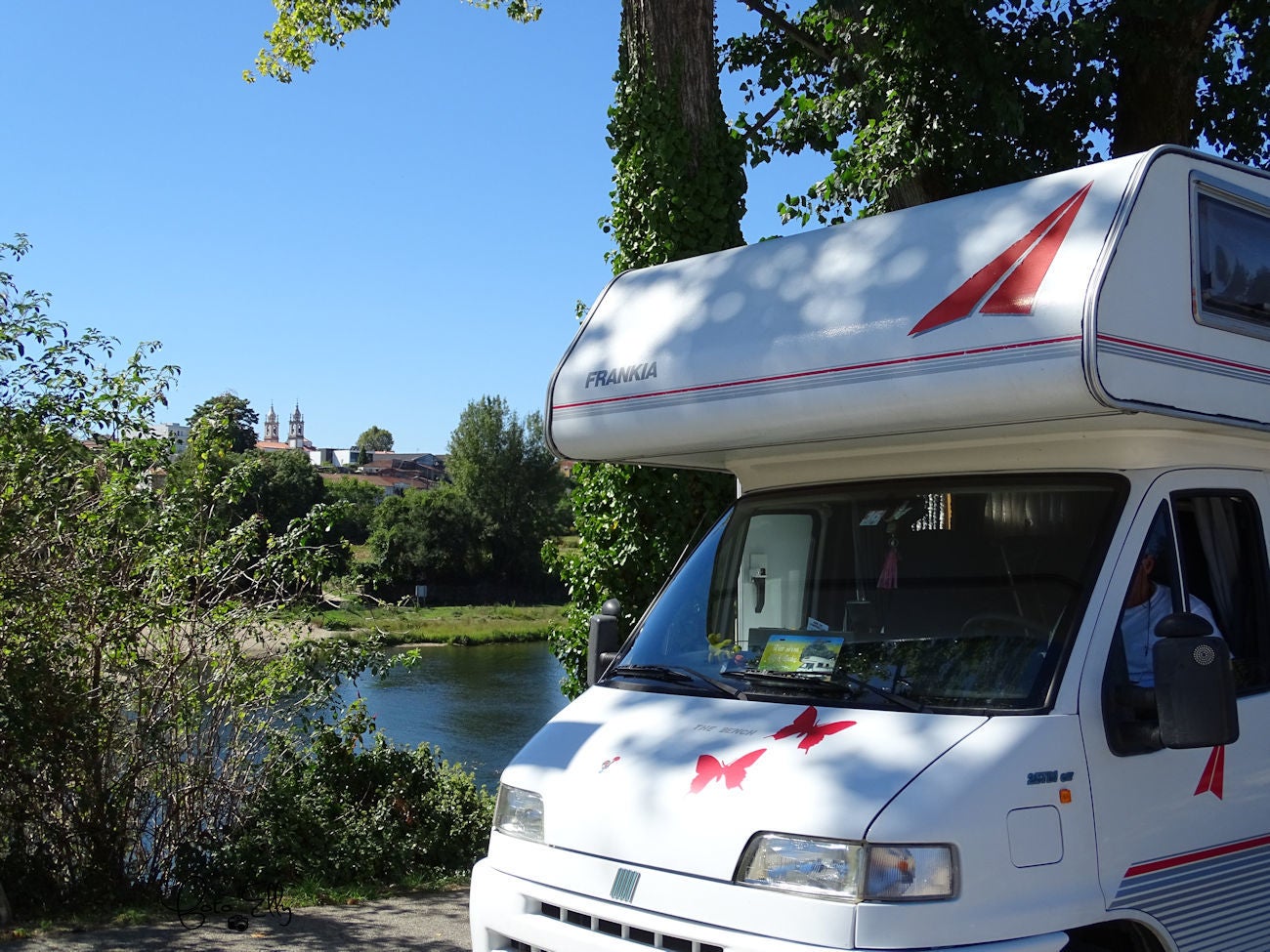 Bij het zwembad in Barcello word het gedoogd dat je er mag staan met de camper.....die staat dan ook in de volle zon ...we gaan er alleen lunchen en doen het aan de rivierkant en dan gaan we de steden ontvluchten...genoeg gezien ,en te druk en te warm