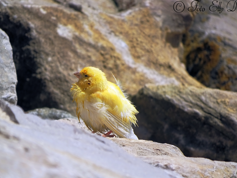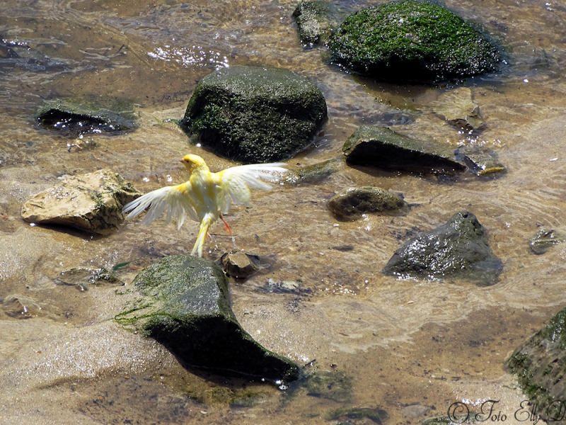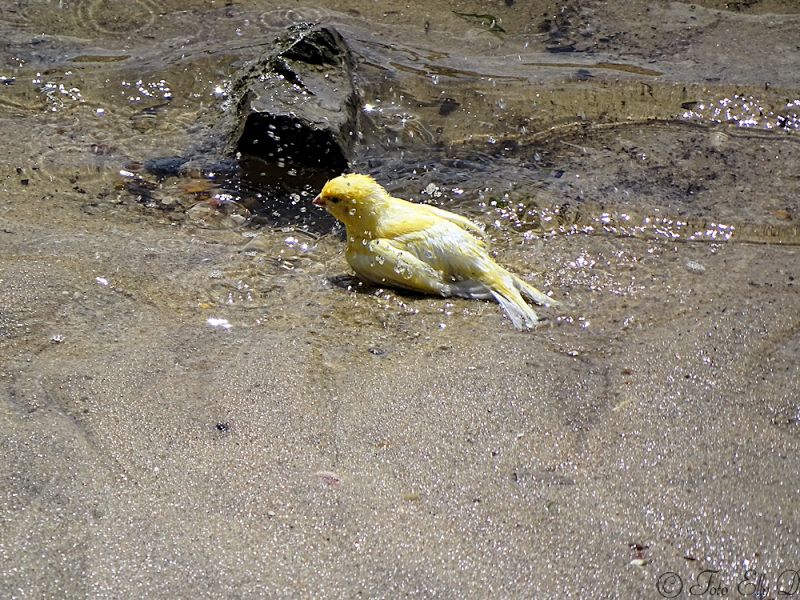 en dan zit je lekker komt vlak over ons hoofd een kanariepiet over gevlogen en gaat is lekker zitten badderen ,gelijk heeft ie het is warm die dag