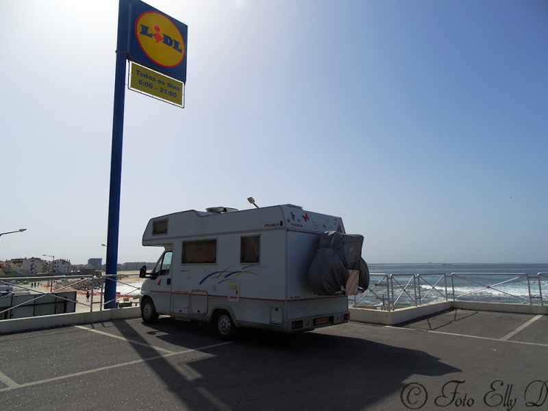 Zo mooi hebben we nog nooit gestaan op de parking van de Lidl wat een uitzicht over het grote strand van Figura da Foz..Oude monumenten zoals dit kerkje uit de 12 e eeuw is geen geld voor om op te knappen,en de was hangt gewoon op straat.