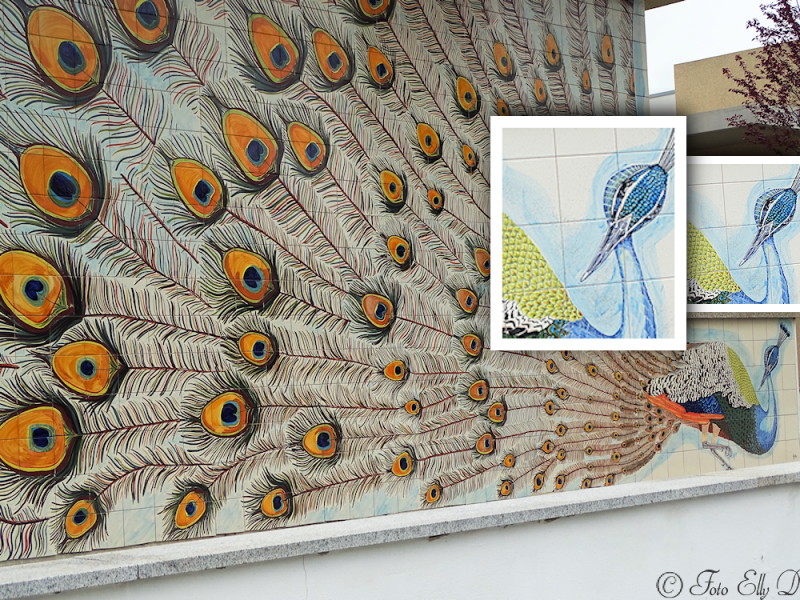 Tegeltableau op de openbare school aan de weg van de camperplek....heb het iets bewerkt dat de kop van de pauw iets beter te zien is