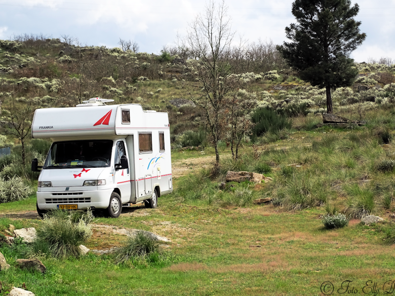 We gaan weer verder ,de natuur word ruiger ,veel rotsen we rijden vlak langs het Estrellagebergte,niks warm meer...Het gebied doet ons denken aan Caussus in Frankrijk .Ook hoogte en al die rotsen zelfs eind april zit er nog geen blaadje aan de bomen..Maar we hadden wel een leuk plekje gevonden aan een beek in Moinhos de Aveia heerlijk geslapen ,en `s morgens hoor je alleen de beek en vogels