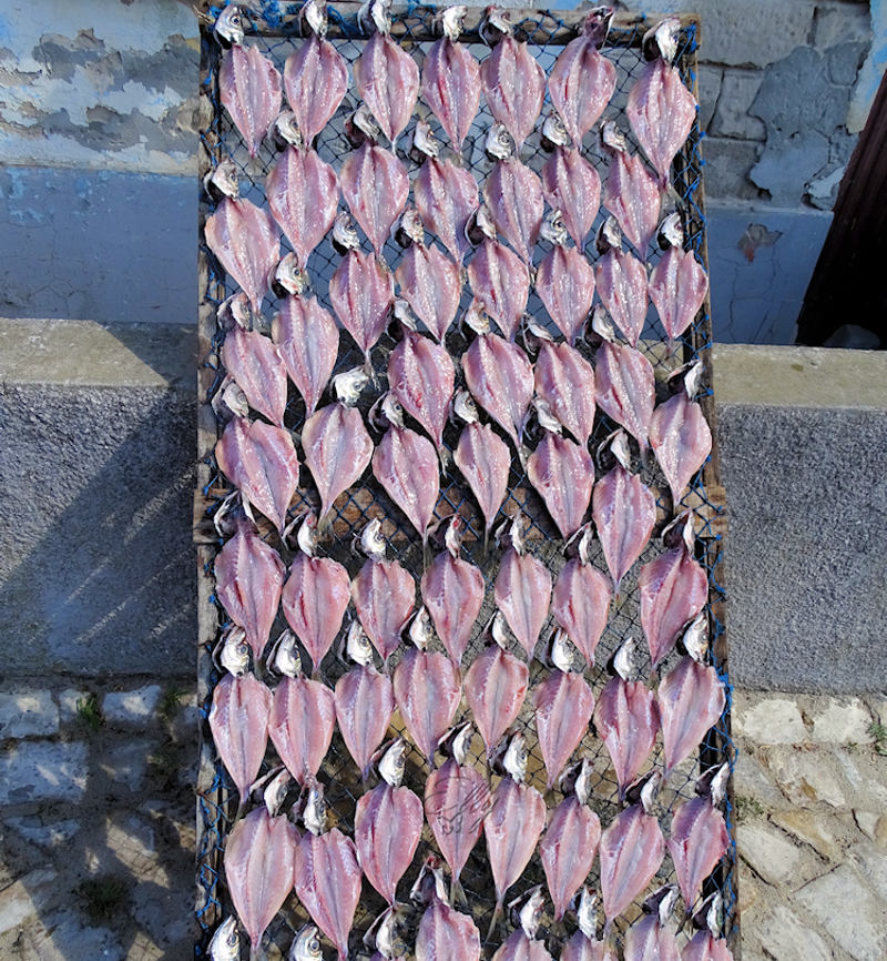 De vis word te drogen gehangen in de zon........en mooi gezicht hoe de zee in de rivier komt stromen
