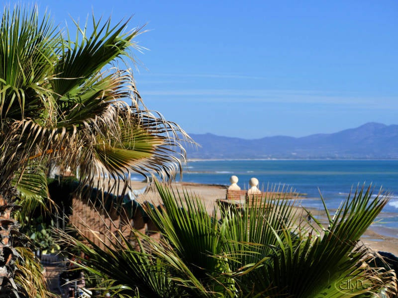 En lunchen doen we aan de boulevard ,nog even lekker wandelen ..want waarom haasten met zulk mooi weer...en het uitzicht op het Canigou gebergte in de Pyreneën, is geweldig !!