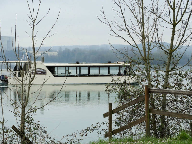 Aan de Rhöne bij de jachthaven waar ook een camping en camperplaats is gaan we lunchen ,fietspaden en wandelpaden ,mooi hier.Het is droog kunnen we even de benen strekken...En bij de camperplaats kunnen we het toillet legen