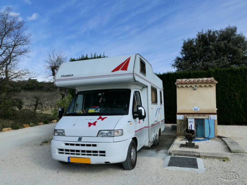 Niet te lang want we gaan door naar de camping in Grillon èèn van de weinige die in maart open is en een verwarmd toillet gebouw heeft