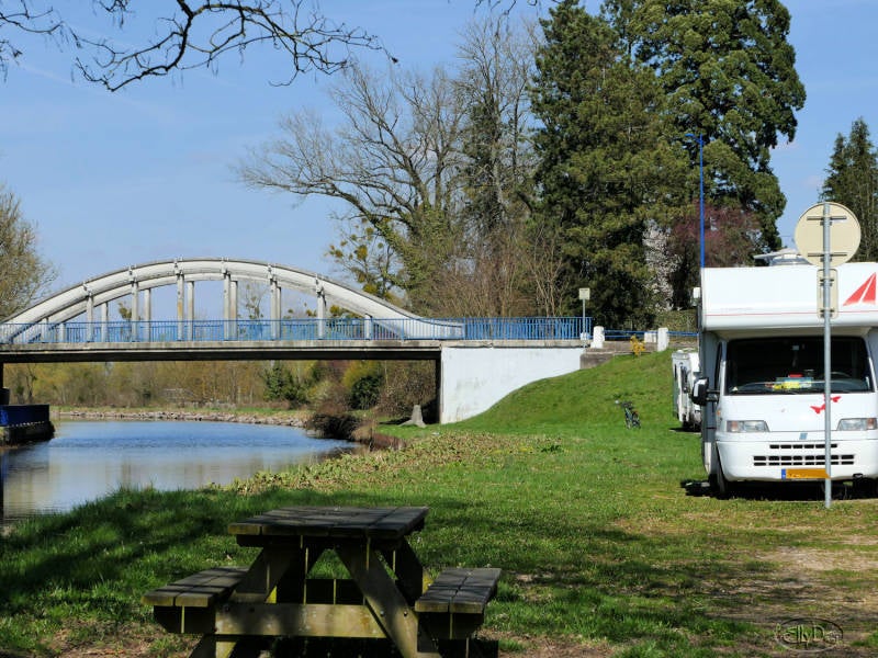 Voor de camping is een camperplaats ...daar waren ze nu aan het werk, maar op de grote parkeerplaats ernaast voor de sporthal kun je ook goed en rustig staan ,met uitzicht op de weide met koeien en hè de eerste madeliefjes zie ik