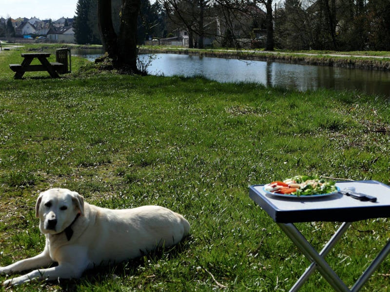 We lunchen bij het kanaaltje Thaon Les Vosges de camperplaats,het is ondertussen weer mooi weer geworden en zitten lekker buiten