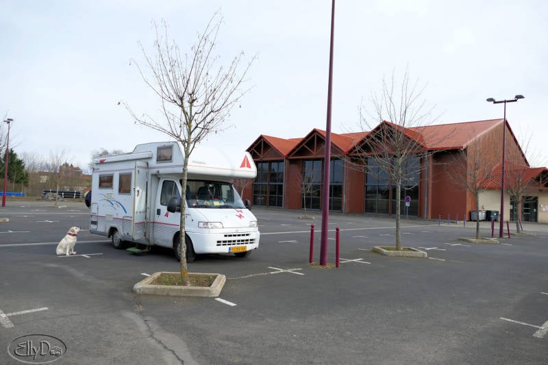 Het is nog vroeg en we rijden verder hier gaan we nu niet staan we rijden door tot Poligny parkeerplaats schuin tegenover de abdij....dit zal ook de laatste keer zijn ,er was een nieuwe camperplaats gemaakt mooi met grasveldjes...maar het vrachtverkeer maakte zo`n herrie op deze weg we waren vroeg wakker en hier komen we niet meer terug. We gaan niet tegen betaling van het verkeer genieten.