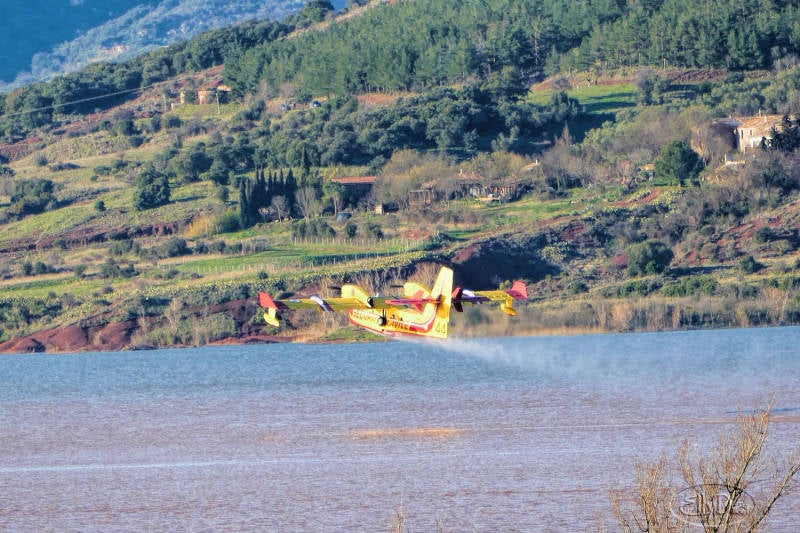 We zakken naar beneden en het word steeds warmer ,18 graden ...zonde om verder te rijden ,we zijn in de buurt van Lac de Salagou ,daar rijden we heen kunnen we genieten van het mooie weer het is inmiddels 18 graden...en voor het wisten was er weer de actie van de watervliegtuigen boven het water ,mooi om te zien