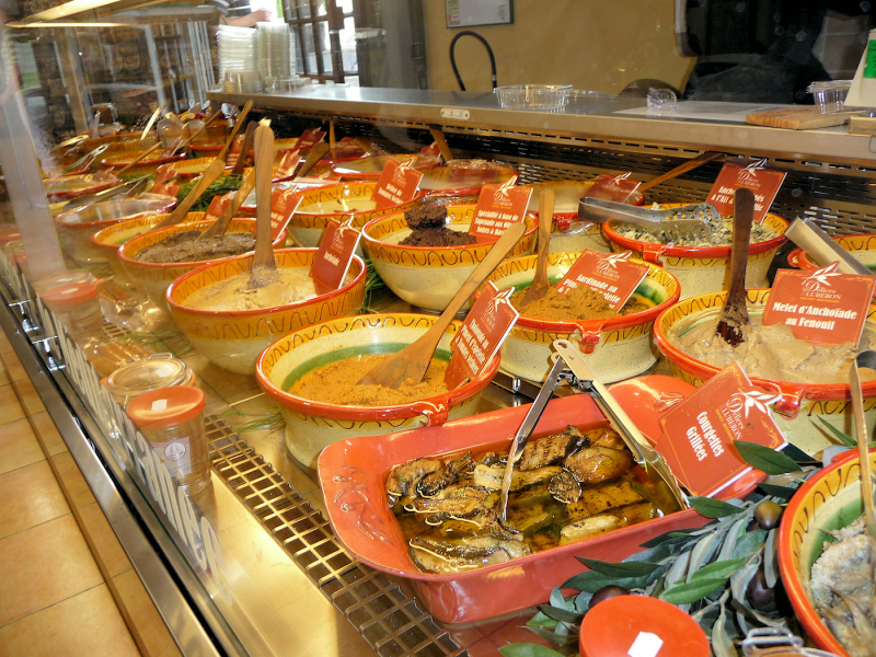 Een hoop lekkers uit de Provence ...de wijn de tapenades de koekjes .Het fruit enz. enz..