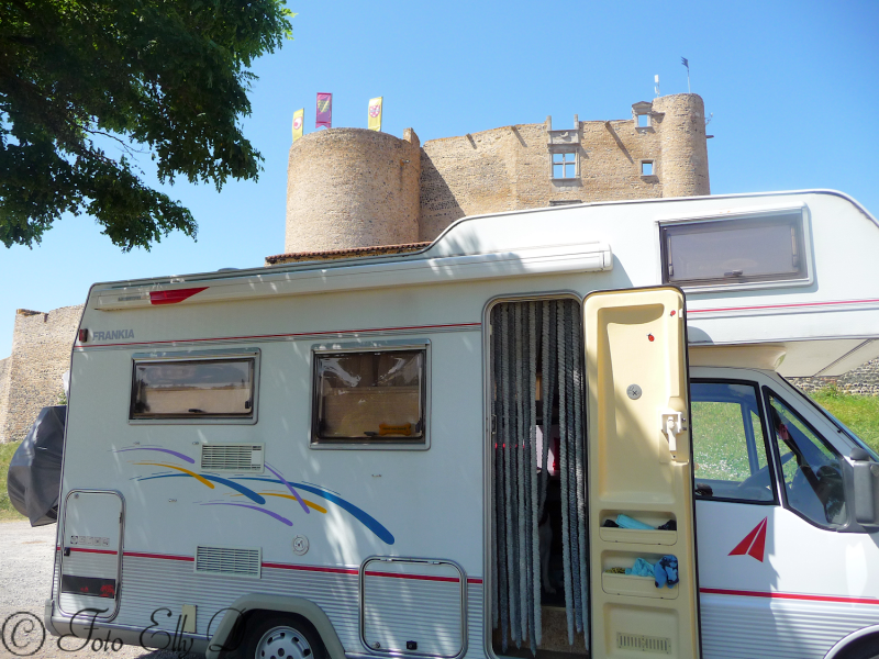 - Dit is ons tweede huisje waar we zo graag mee op pad gaan hier voor een groot oud kasteel in Frankrijk.