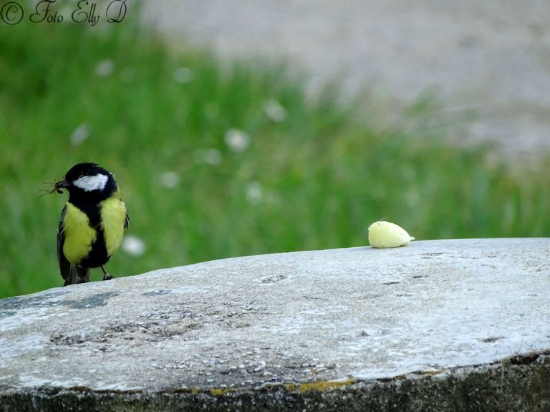Nest van de koolmees was vlakbij in de electriciteitskast ,de jongen hoorde je piepen ,ik had een aardappeltje neergelegd op een steen ...kon ik het goed bekijken en hij had lekker eten.