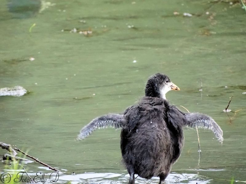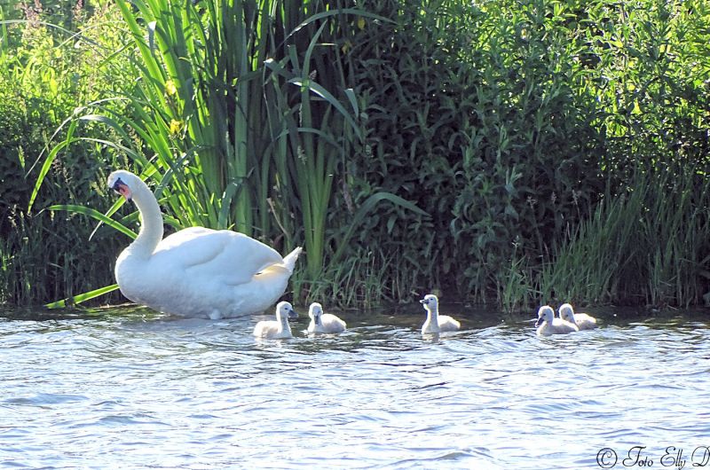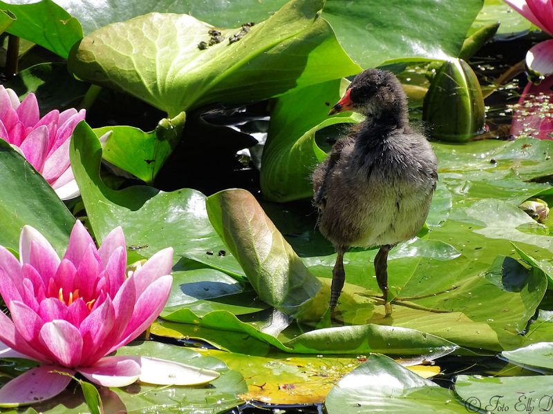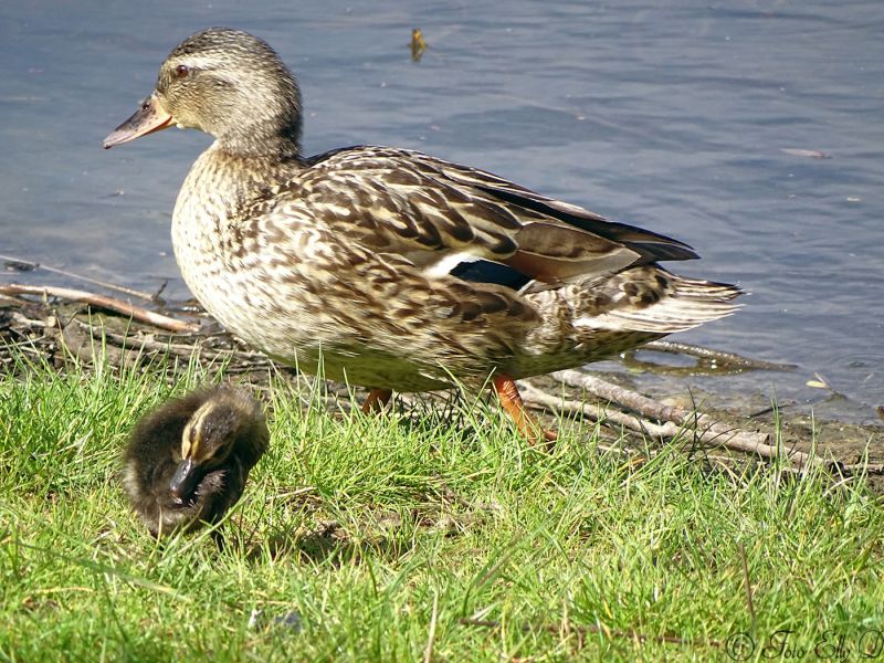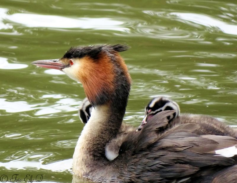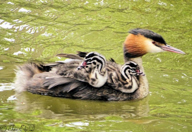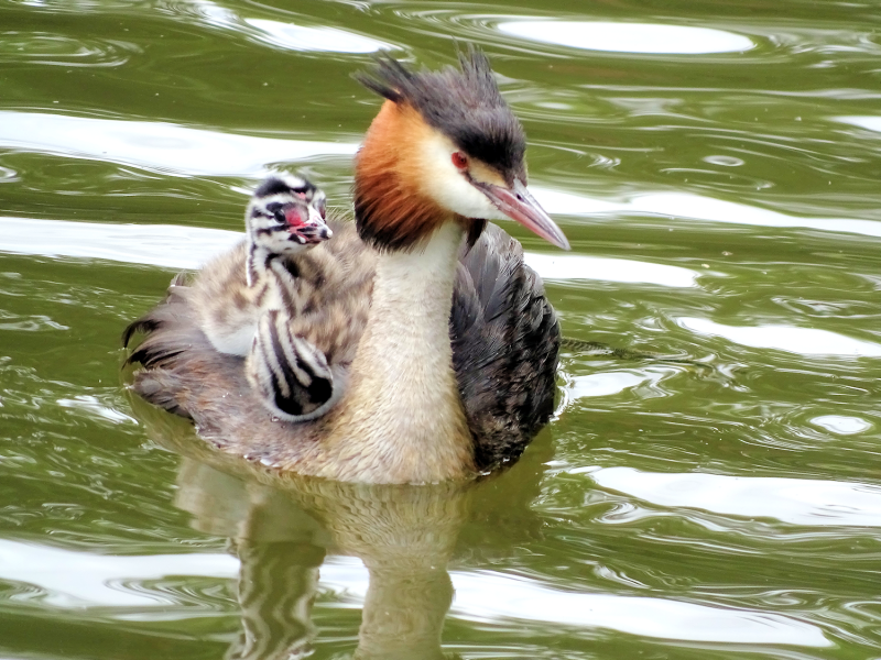 eind mei en wat zie je ze dan veel de jonge eendjes ganzen ,meerkoeten en Fuuts bij hun moeder op de rug