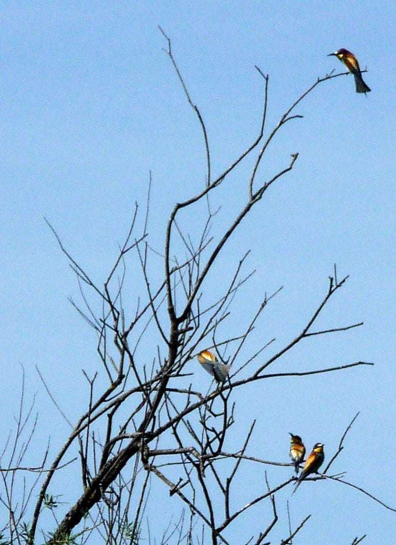 heel hoog in de boom ,bijeneters ,wat een ontzettend mooie vogel is dit
