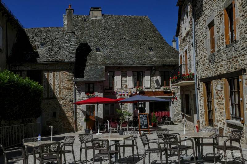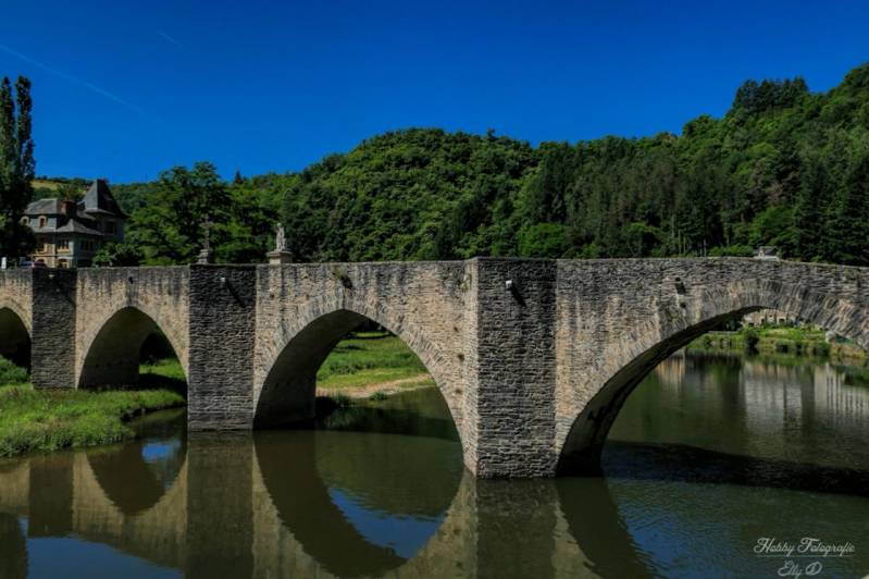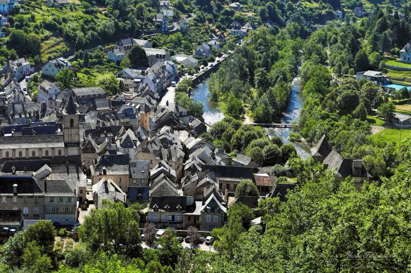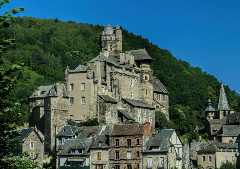 Maar eerst komen we door het mooie stadje Estaing,we parkeren de camper en gaan een stukje lopen door het mooie stadje aan de LOt