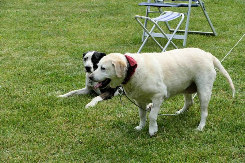 De jonge hond Bella (1 jaar) ..vond Floor in het begin nog leuk ,maar was te vermoeiend voor haar dus Bella stuurden we terug naar huis...heel interessant een pauw!!!