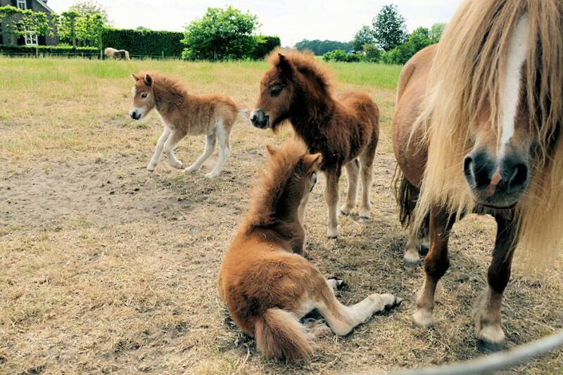 We lopen een stukje door en zien een moederpony met jong ...niet èèn maar 3 moeders met veulens ,wat zijn ze leuk