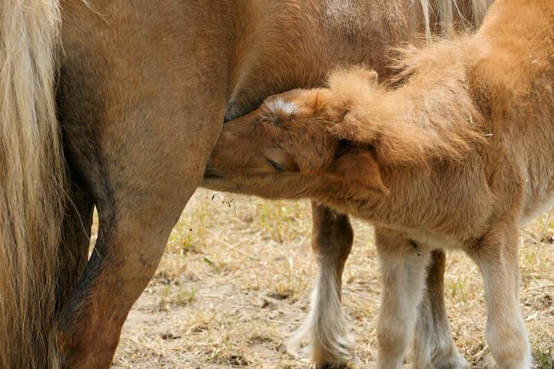 werkpaard met jong ,van een bijzonder ras
