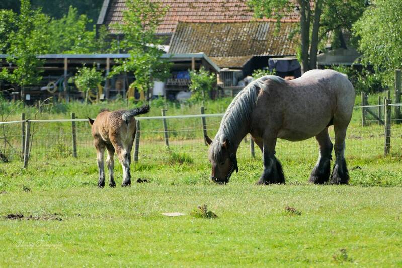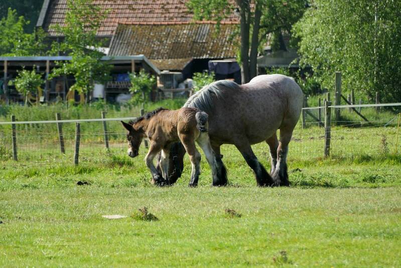 Stukje naar boven scollen zie je zo`n trekpaard met jong